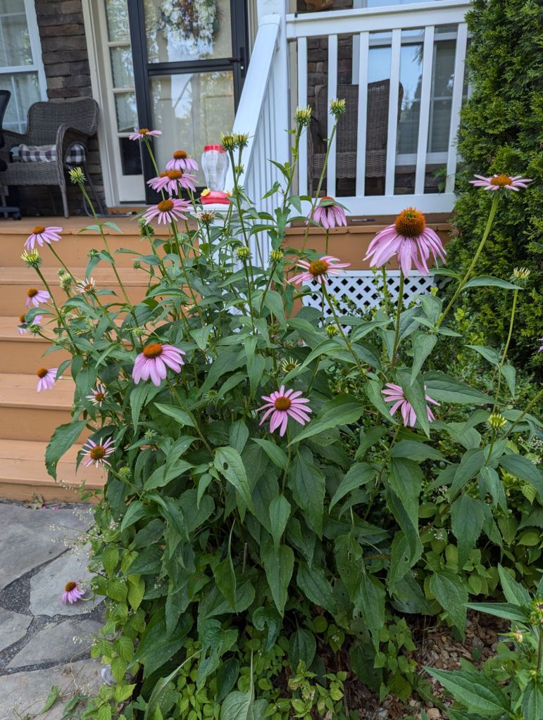 I was surprised to find the hummingbirds around the coneflowers! The bees seem to really like them as well.